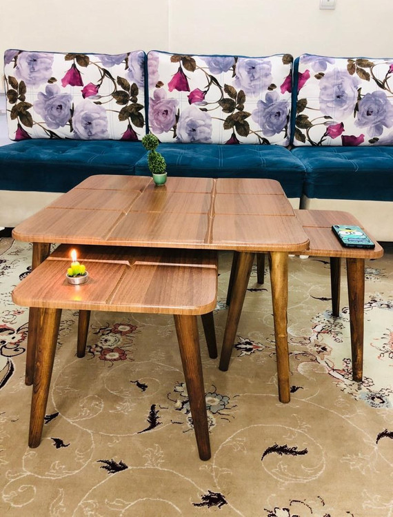 میز جلو مبلی عسلی یک ست 3 عددی محصولی پر فروش میباشد که با بهره گیری از تکنولوژی روز و متریال ام دی اف با روکش وکیوم ساخته شده است. رنگ این کار ثابت بوده و به مرور زمان تغییر نمیکند و در مقابل خط و خش مقاوم است. صفحه ضد آب می باشد و به راحتی قابل شستشو و نظافت با انواع شوینده ها است. لبه کار به صورت یک تکه با صفحه روکش شده و بسیار مقاوم و زیباست.
