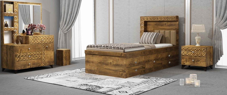 باکس این تخت دارای یک جفت کشو در سمت راست و یکجفت کشو در سمت چپ است که مابین این دوکشو یک کشو داشبوردی قرار دارد که میتوان استفاده های مختلف از آن کرد.