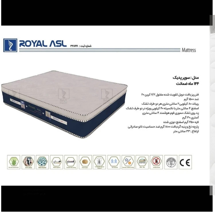 تشک رویال اصل دو سال ضمانت از مدل های فنری و ارزان قیمت بازار می باشد که زیاد توصیه نمی شود