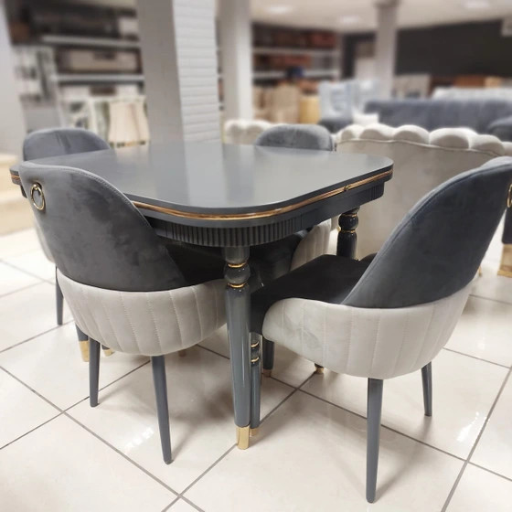 این میز میتواند دارای صفحه مستطیلی یا گرد بر اساس سفارش شما باشد و با صندلیهایی با پارچه دیاموند که قابلیت شست و شوی راحتی را برای شما به ارمغان می آورد و برای نشستن استفاده میشود. میز نهارخوری دیانا یا پایه های نقره ای طراحی شده است که میتواند به سلیقه شما مشتریان عزیز تغییر کند .