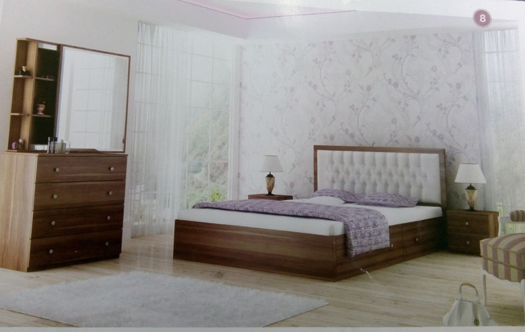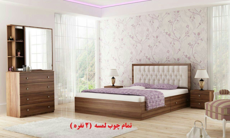 در قسمت تاج تخت خواب از پارچه به صورت لمسه دوزی شده بهره گیری شده است.