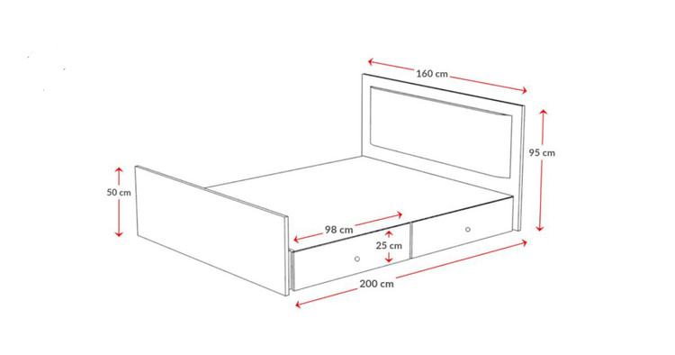 طول این تخت خواب ۲۰۰ سانتی متر، عرض آن ۱۶۰ سانتی متر و ارتفاع آن تا بالای تاج حدود یک متر است.